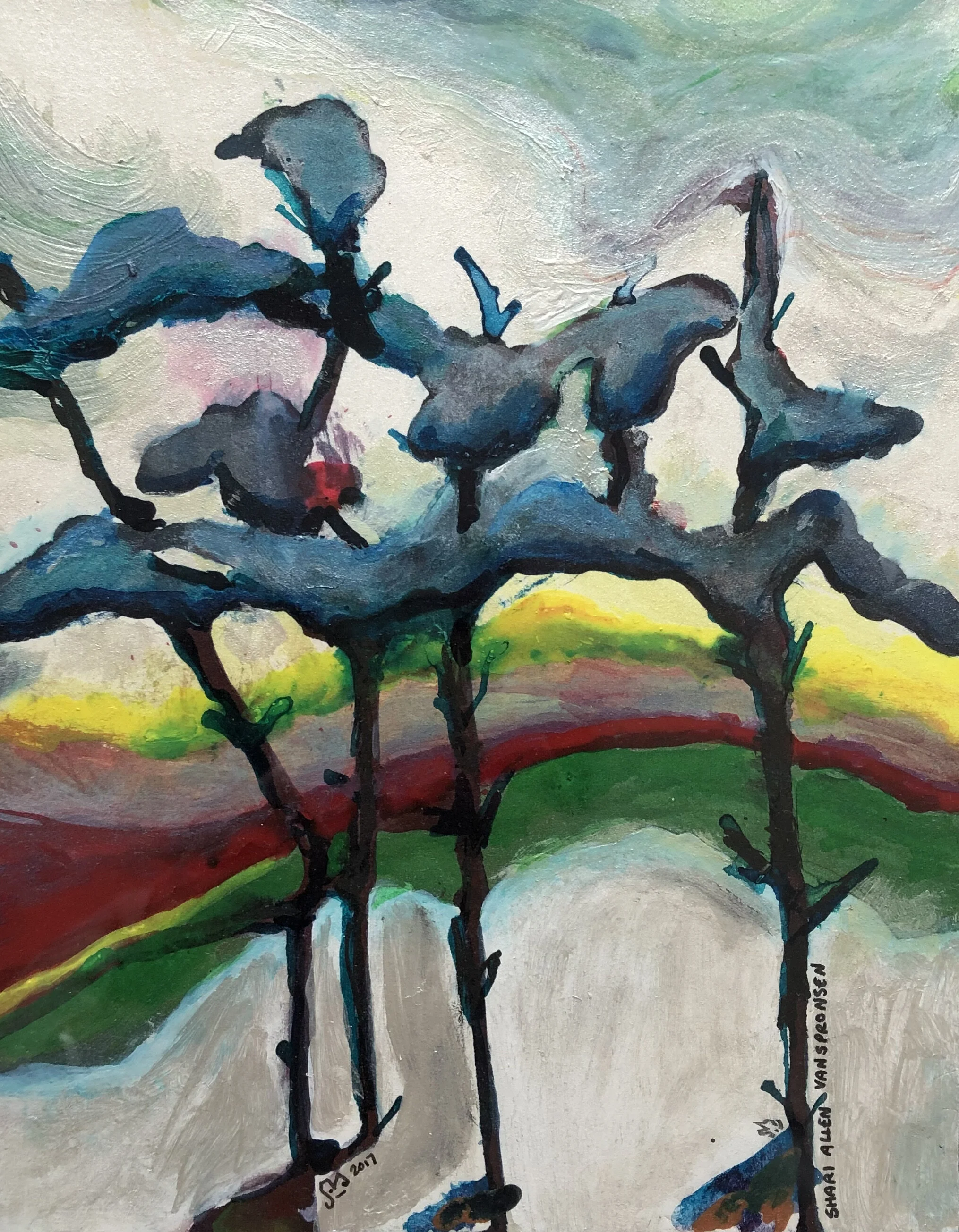 I sketched this landscape out rather quickly, enjoying this new medium. It was a small painting, somewhat “Dr. Seuss” in it’s rendering.